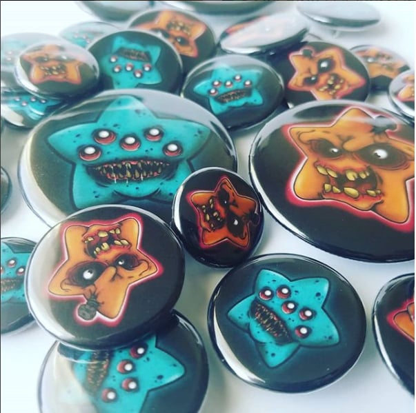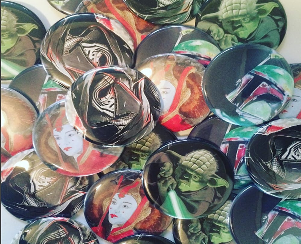 Make your buttons pop with a holographic finish. You can purchase this as an add on for your buttons.